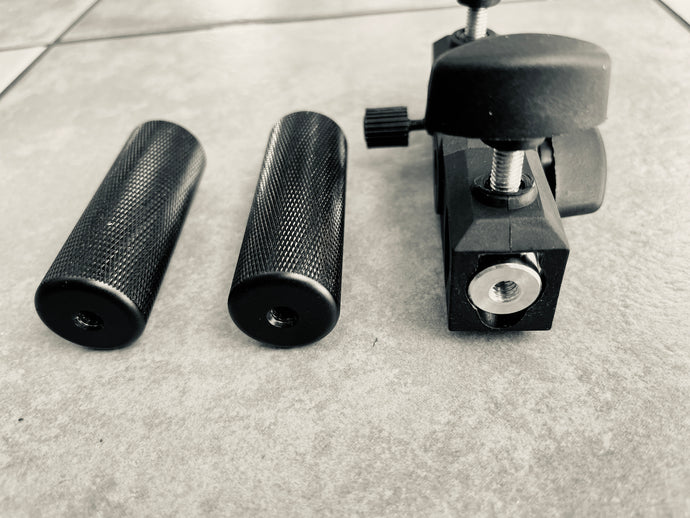 - 2 x 3.5" solid knurled metal handles
