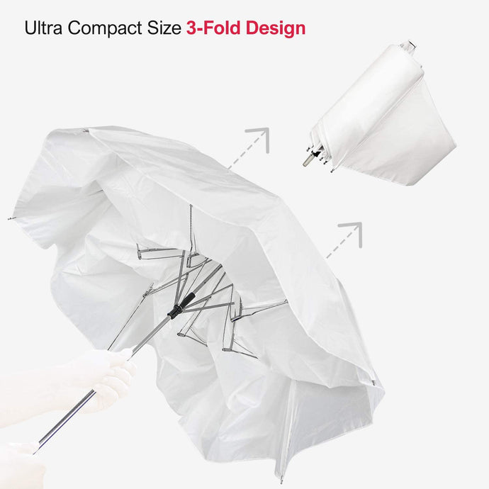 - Reflective umbrella softens the effect of direct flash illumination with softer highlights than a silver reflective umbrella